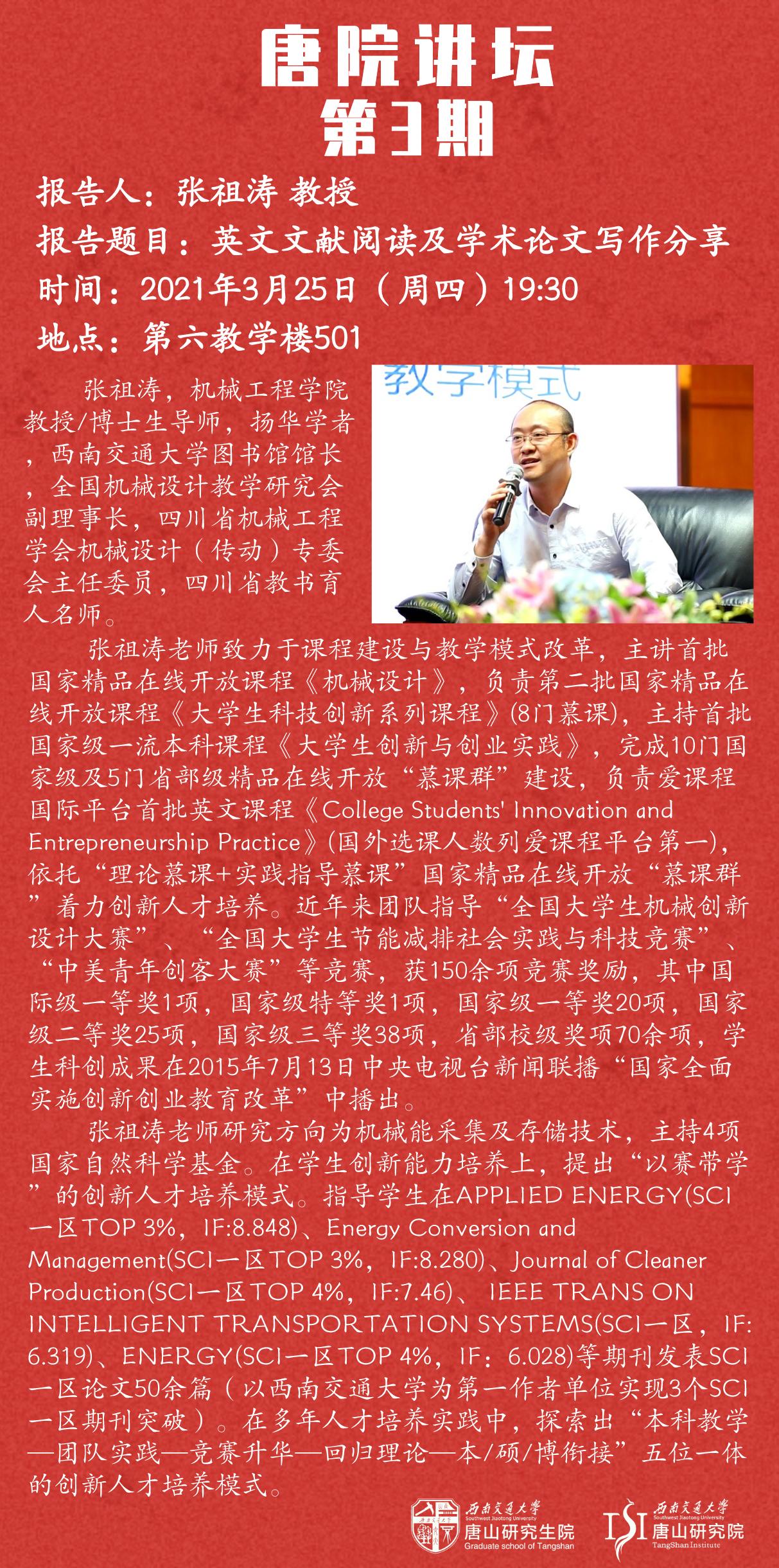 上一篇: 张祖涛教授做客“唐院讲坛”,讲授《英文文献阅读及学术论文写作分享》