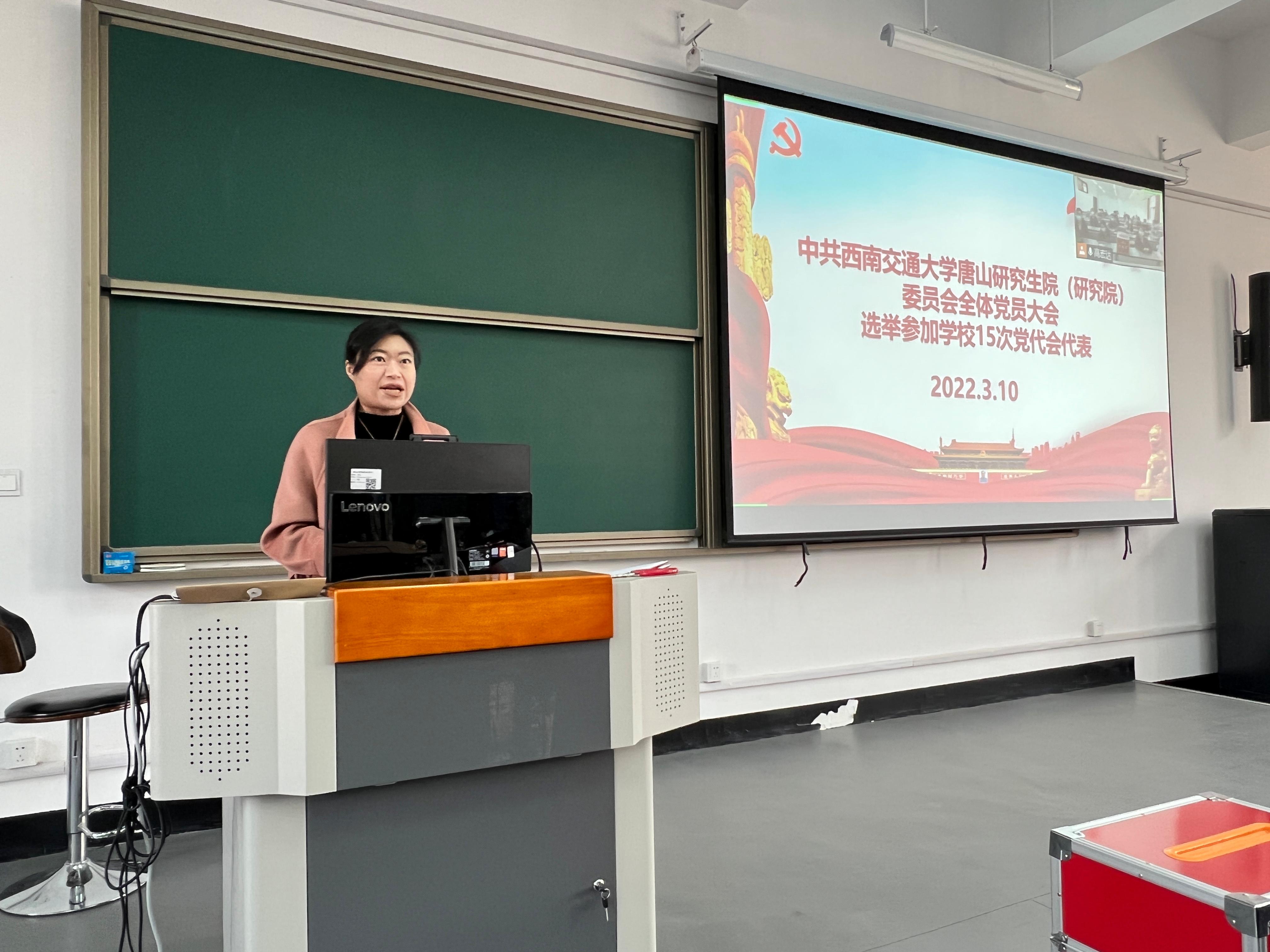 第十五次代表大会代表,唐山研究生院(研究院)全体党员参会。会议由唐山研究生院(研究院)党委副书记梁思颖主持。