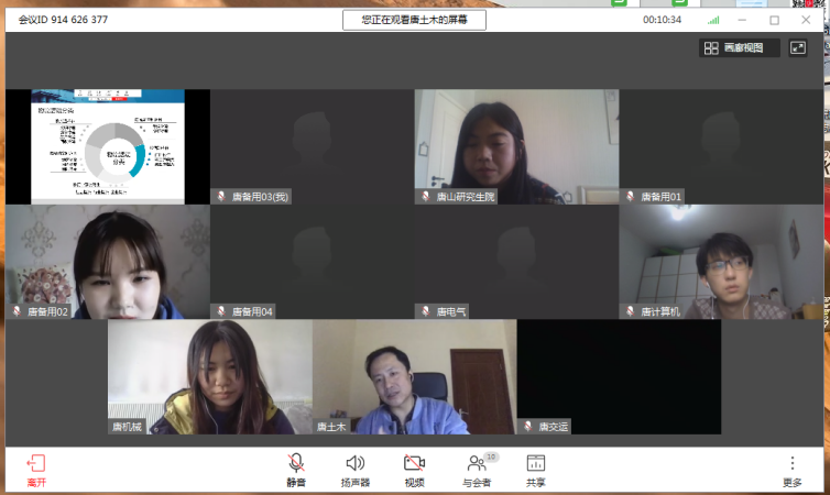“停课不停学、停课不停教”。为保证线上教学有序开展,唐山研究生院迅速部署相关工作,立即制定线上教学工作预案。开课前,唐院管理团队的老师们全力确保任课教师熟练使用网课平台和工具,用最优的方式面对新形式和新要求。同时提前进行演练,对线上教学中可能会出现的突发情况进行及时、有效地应对和改进;交大远程与继续教育学院为网络教学提供了学习平台和直播系统支持;在网课正式进行时,唐院管理团队的老师们分管各门线上课程,和同学们一起上课,以便对教学过程中出现的问题进行及时处理,为线上教学保驾护航。