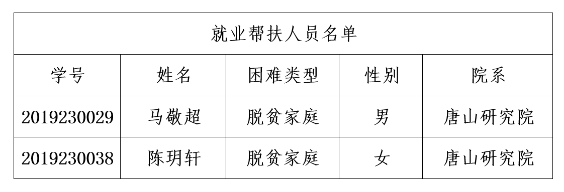 信息认定,现确定以下三名学生为困难毕业生就业帮扶人员: