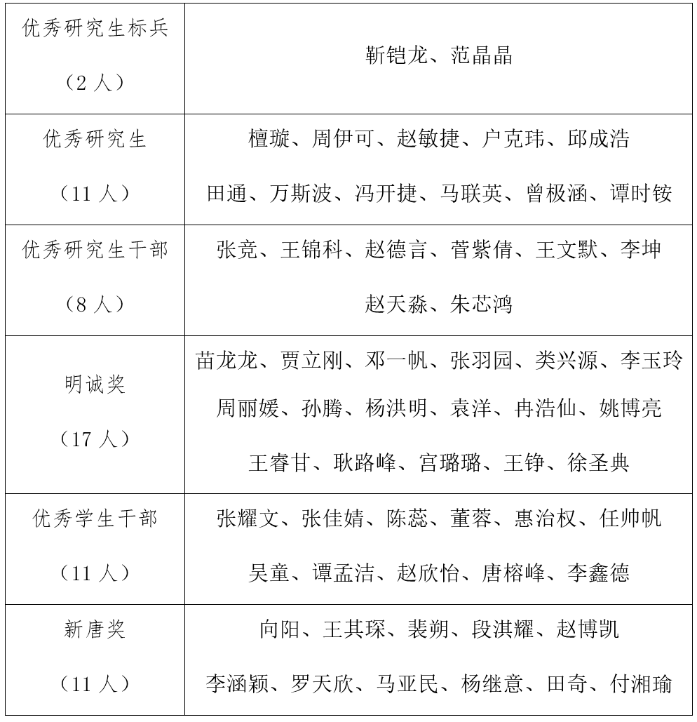 按照《台湾a片 研究生荣誉称号评定细则》的相关规定,现将2023-2024学年台湾a片 研究生荣誉称号推荐人员名单公示如下: