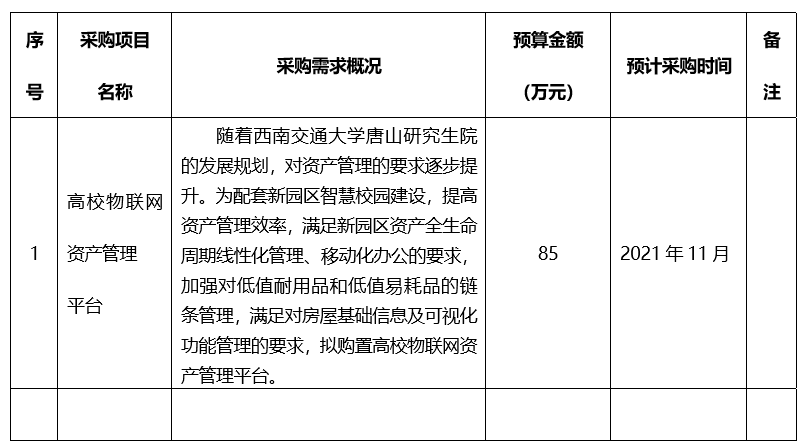 为便于供应商及时了解本单位采购信息,现将台湾a片 高校物联网资产管理平台采购意向公开如下: